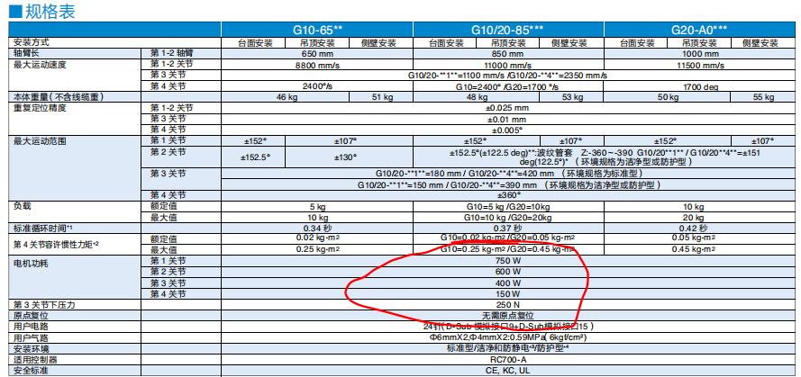 一般四軸十公斤的愛普生機械手功率是多少,官網找不到功率或者A數,是甲方來買機械手,我只知道是臺面式四軸負載十公斤的