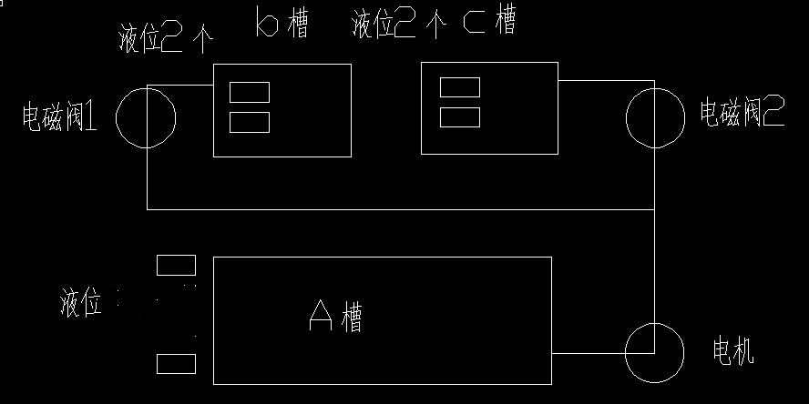 控制要求 A/B/C 槽沒(méi)水情況下點(diǎn)擊任意B槽注水首先A槽水先注滿(mǎn)之后在到B槽注水。