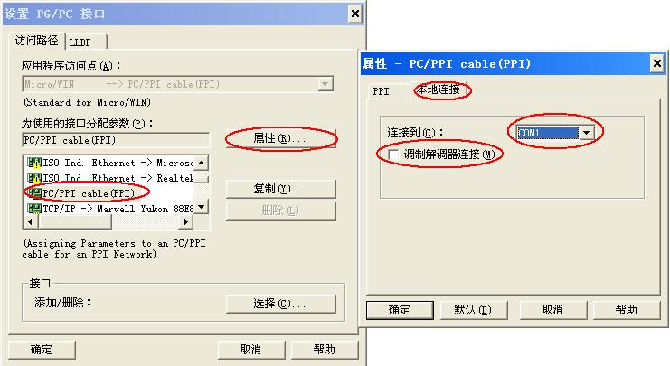 設(shè)置PG/PC接口>PC/PPI的屬性>點(diǎn)本地連接>選對你的端口(COM口或USB口,看你的PPI線纜),不要勾那個(gè)調(diào)制解調(diào)器連接.