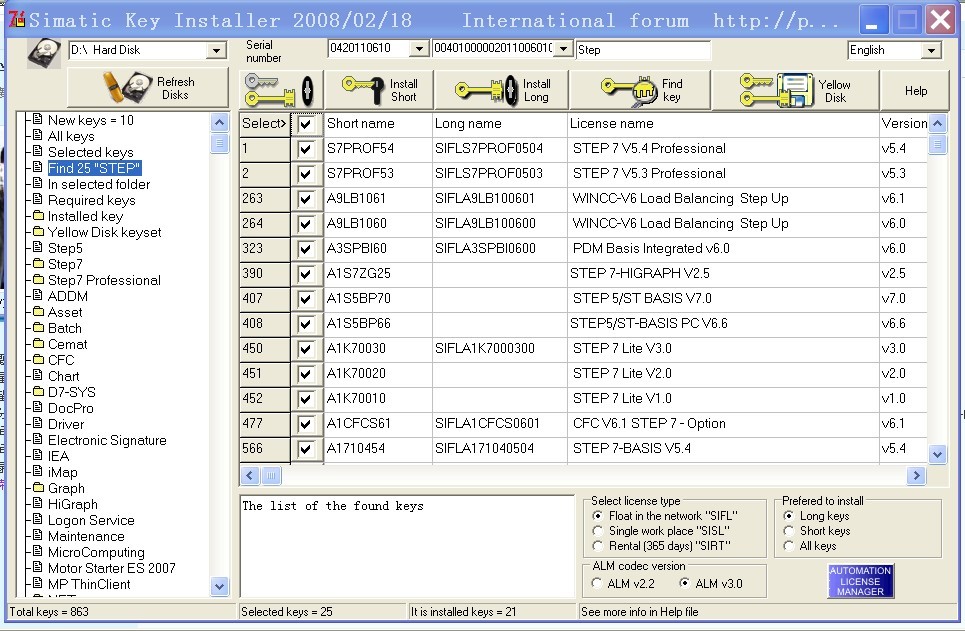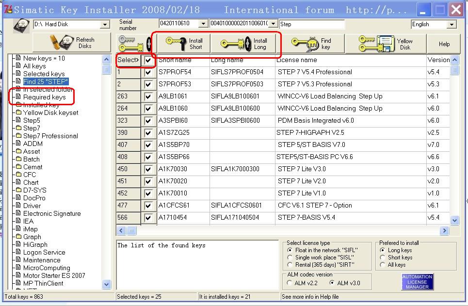 其實“required keys”選項就是軟件自動檢測出來的、你電腦上裝了的軟件還沒有授權的、所有軟件的所需授權;