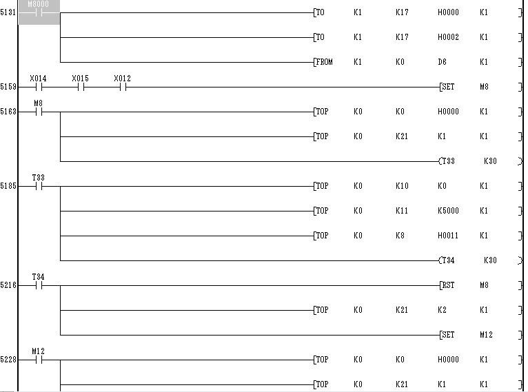 現在要使4DA模塊的3通道輸出電壓0-10v,結果現在3通道沒有電壓輸出,本人對模擬量控制一竅不通,幫忙看下一下程序,如何修改才能輸出電壓,急急!。!,有必要可以把整套程序上傳,謝謝,在線等~~~ (FX2n-48mt+8EX+8EX+4DA