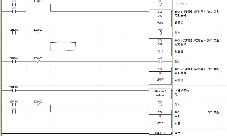 就是一個先壓摸然后放水再吸水然后開摸,放完水時放水閥關閉后同時要蓄水。第一次編程請指點。謝謝
