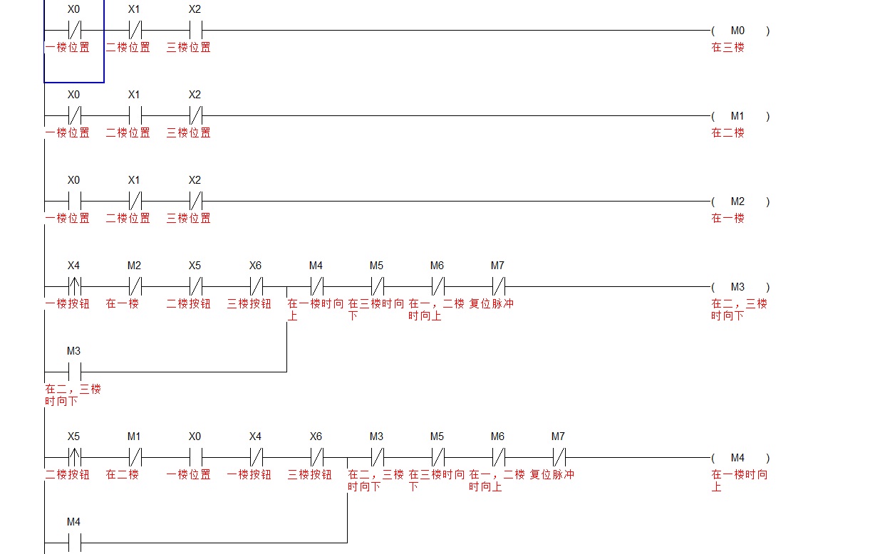 我另外編了一個,我覺得這個程序在樓層較多的時候配合計數器會比較靈活些,比在一樓回復的那個好點。這個和一樓的那個都是控制升降部分的。