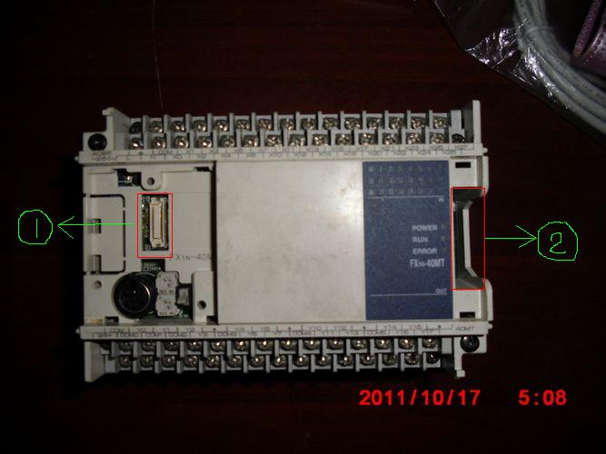我現在要擴展FX1N-40MT的通訊口,請問是在圖中1指示處擴展,還是在2指示處擴展呢?聽別人說是在1處擴展,我只是不太確信,想確認一下,那2處是用來擴展什么口的呢?或是2處用來連接什么模塊的呢?