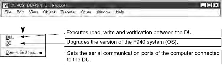 3. 打開SW0PC-FXDU/WIN-C軟件,選擇傳送――通訊口設置,看端口選擇是否與電腦通訊端口一致。然后選擇傳送――DU,進入項目傳送頁面。