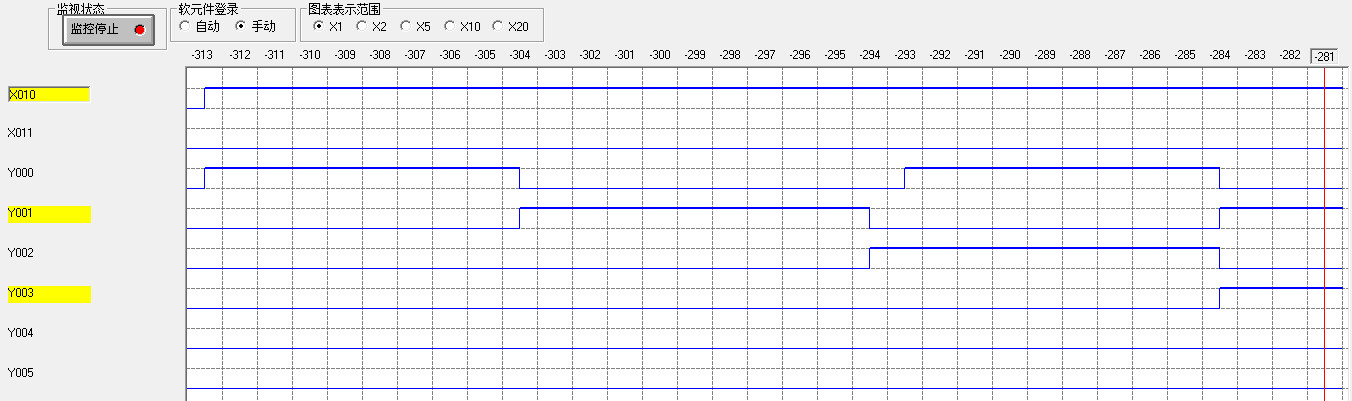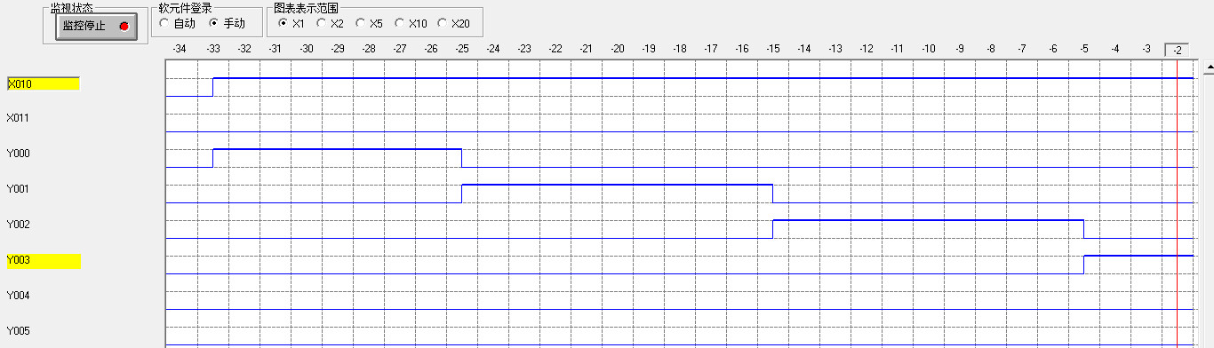 第一個程序的X10,在程序里,只導(dǎo)通一次,就斷開.你一直接通.也只導(dǎo)通一次.它能斷Y0. 而第二個程序里的X10,你接通后,就是一直導(dǎo)通.雖然有斷Y0,但人眼是看不出來.掃描太快.即又重復(fù)輸出Y0了