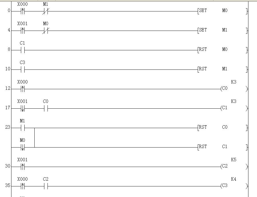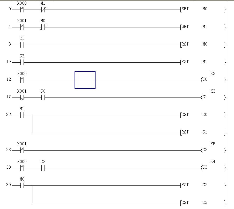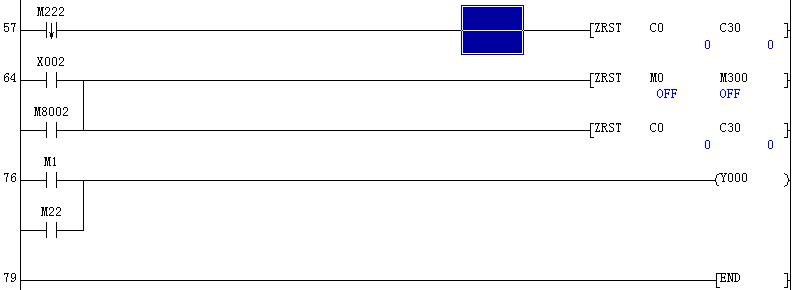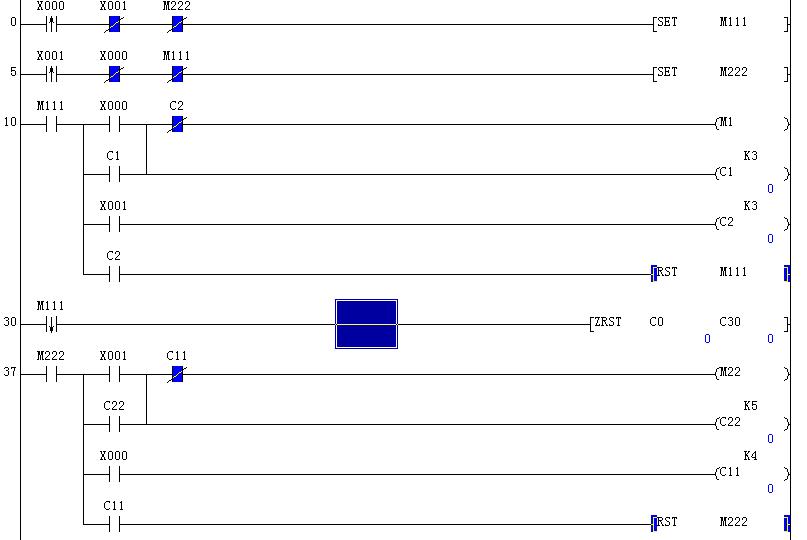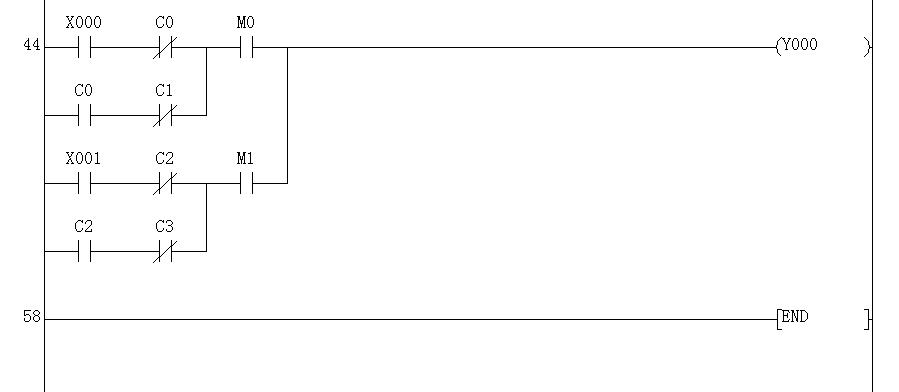 58步程序,還防止先按X0(X1)后,在按X0(X1)未到次數前,誤按X1(X0)的意外,增加了兩個聯鎖。