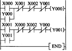 只要把正反轉的啟動按鈕的常閉串在對方程序里就行了   為什么還要把Y0 Y1  常閉也串進去