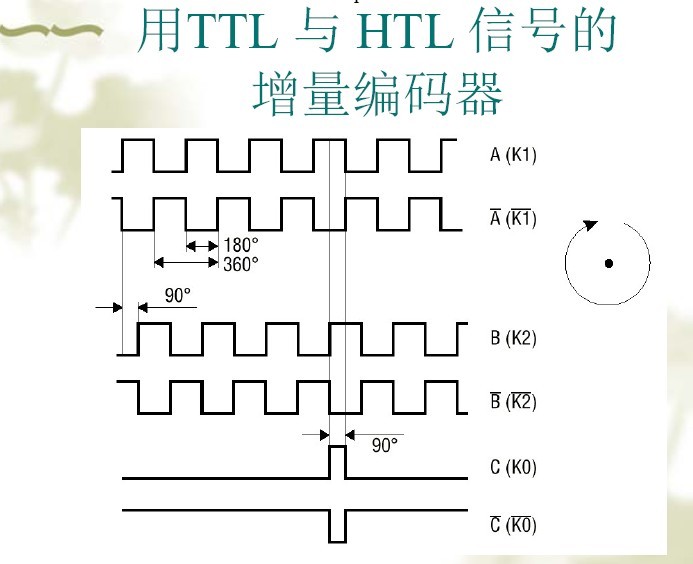 一樓正解,增量式編碼器正轉(zhuǎn)時A相超前B相90度,反之B相超A相90度,一圈出幾個脈沖看編碼器分辨率。Z相一圈出一個脈沖。最近在看編碼器的資料。不知理解的對不對。