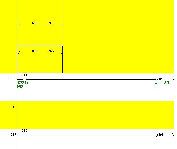 別人是用FXGP-win寫的程序,你用GPP讀取,由于GPP觸點(diǎn)數(shù)設(shè)置只能11觸點(diǎn),而這一段又不止11觸點(diǎn),所以有黃色背景,有一個(gè)辦法可以弄好,轉(zhuǎn)換成指令表將黃色部分從開始到結(jié)束復(fù)制下來,新建一個(gè)空白程序也是用指令表的形式,然后粘貼,然后轉(zhuǎn)換成梯形圖,注意指令表的開始和結(jié)束!超過24行的可以重新再起頭接著上面做,說簡單一點(diǎn)就是將一段很長的程序砍成幾節(jié)寫下來 ,不然轉(zhuǎn)換了還是黃色!轉(zhuǎn)換好之后在復(fù)制到原來的位置,將原來的黃色直接刪除!