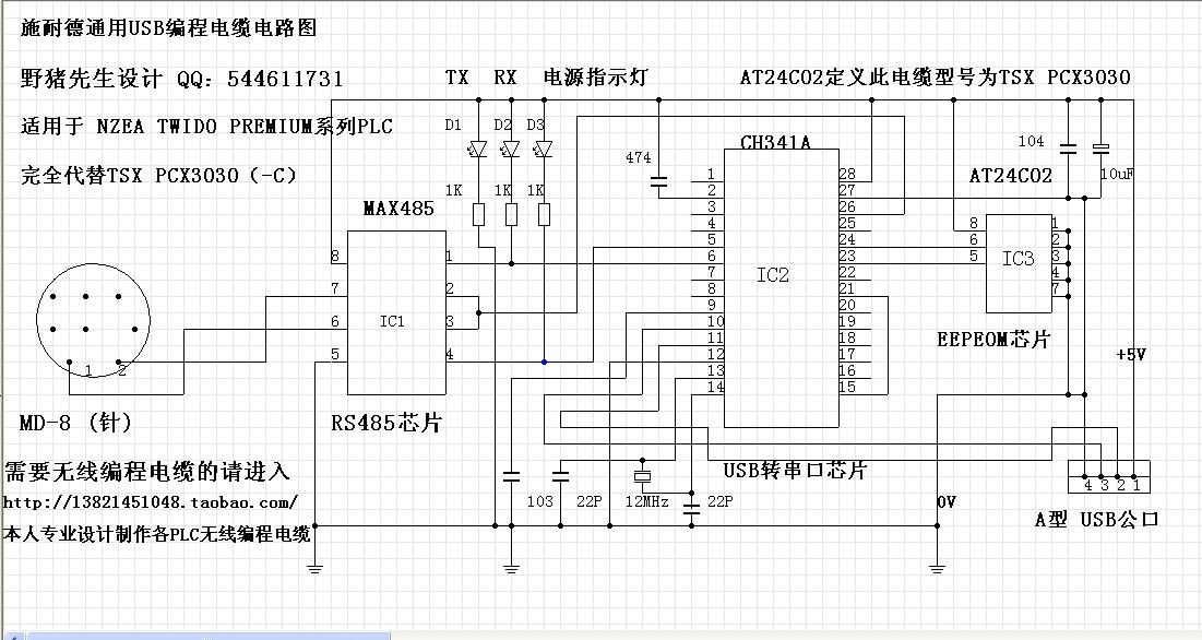施耐德PLC通用USB編程電纜電路圖 完全代替TSXPCX3030(-C)