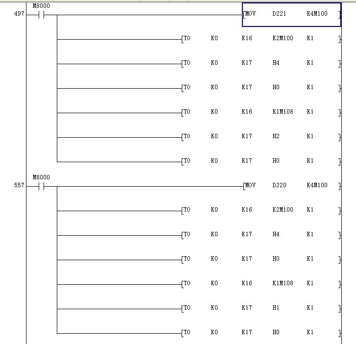 請問哪位師傅告訴我三菱FX2N-2DA模塊程序怎么寫,前面按照說明書可以照樣畫葫蘆,可后面就寫不來了。