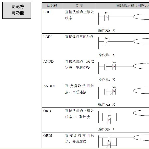 LDD就等于三菱的LD指令,感覺樓主說的指令跟三菱的沒什么區(qū)別,區(qū)別就是比三菱的多了一個D