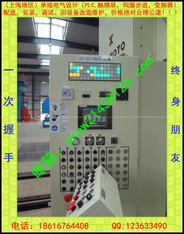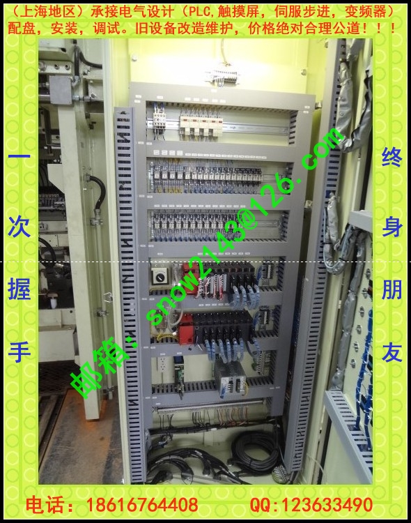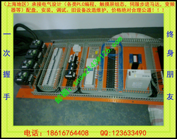 (上海地區)本人有10年多的非標設備設計經驗,主要為汽車制造業和食品包裝業 電子行業,精通三菱,西門子,松下,歐姆龍,臺達 AB 等PLC;以及上位機程序界面開發,運用VB等。三菱,松下 臺達等伺服電機,發那科,ABB,安川等機器人;現承接電氣設計,配盤,安裝,調試。舊設備改造維護,有多人團隊,我做過大量大型項目,歡迎指導,價格絕對合理公道!!! 電話:13564070882  陳工