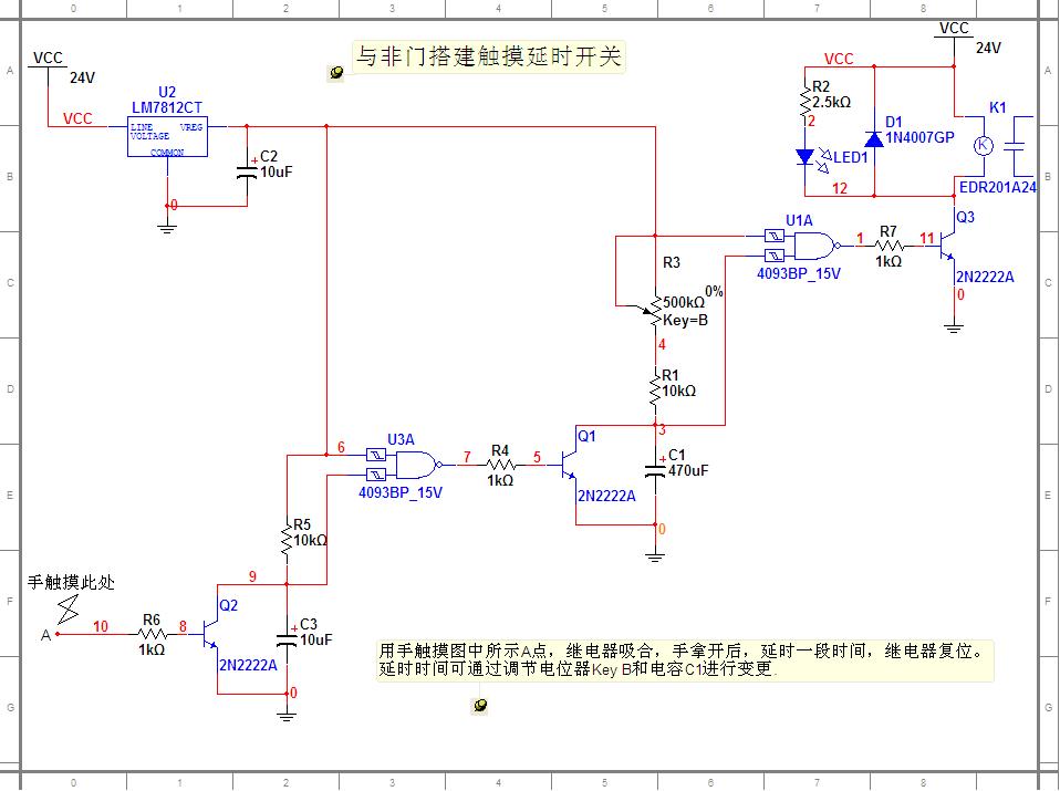 用與非門制作觸摸延時開關,也可以用或非門制作觸摸延時開關。