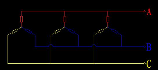 引用引用第6樓myy951于2013-04-18 21:30發(fā)表的 :這是三個(gè)加熱器并聯(lián),一組加熱器是30KW,單組加熱器30KW加熱功率不夠,所以用三個(gè)從上到下串聯(lián),所以加熱棒也串聯(lián)接成如圖所示,有人說這樣接三相不平衡?為什么啊,三個(gè)加熱器的一頭連起來分別接三相電的ABC,