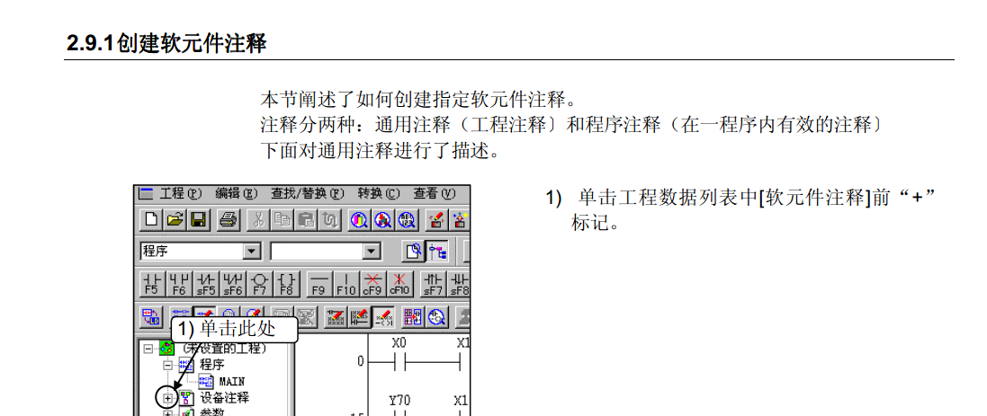 我下載的三菱程序里有文字注釋,為什么試著編程自己加文字,加不了,三菱程序里是怎樣寫入文字注釋的?