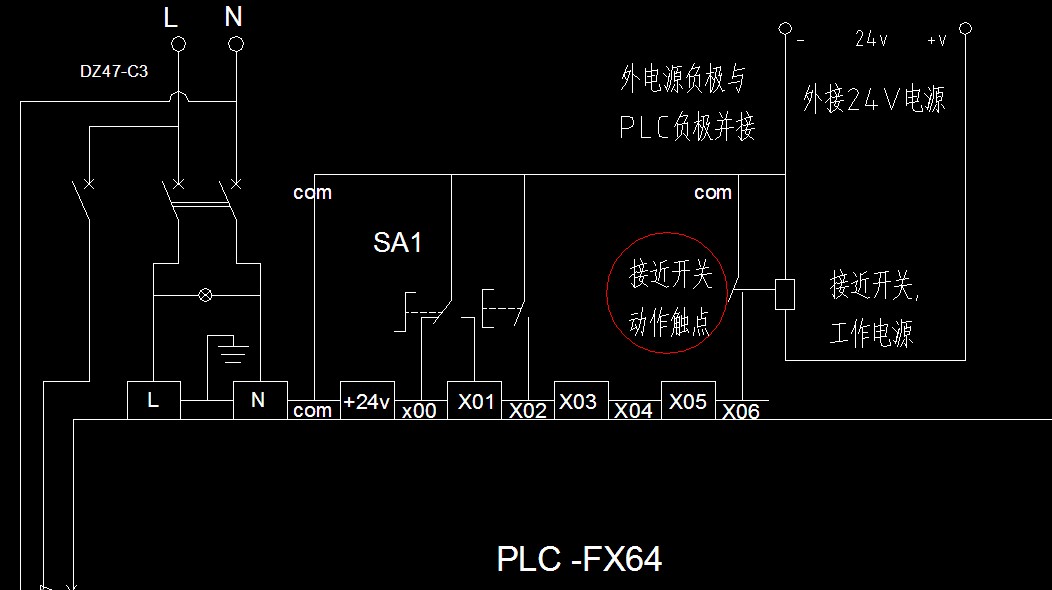PLC控制電路,(傳感器,或接近開關(guān),外接24V電源供電),外電源負(fù)極與PLC24V的負(fù)極并接,這樣能不能實(shí)現(xiàn)輸入點(diǎn)工作,如圖。