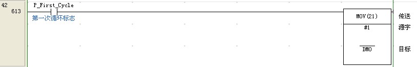 2、PLC上電的第一次掃描時就把十六進制或BCD的“1”寫入寄存器DM0中