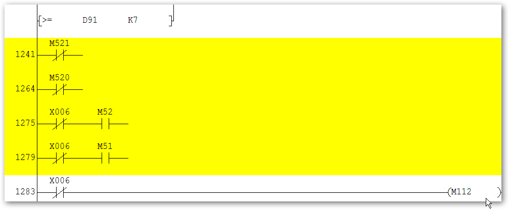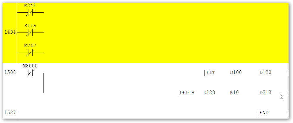 程序不完整,顯示為黃色,太多太多,且地址都亂了,不甘心,又拿另外一臺機測試,問題一樣的,只是變黃色的地方不一樣了,但是程序總步數是一樣的,都是1528步。