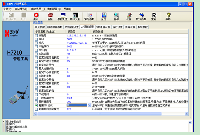 力控支持宏電模塊UDP和TCP兩種不同的通訊方式,參數設置時除了在“常見參數“中的”DSC連接類型“選擇TCP或者UDP,還需要在”IP通道設置“中 ”啟用DDP協議“選擇”EN或者DIS“