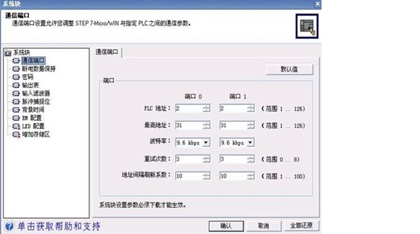 用編程軟件STEP 7 Micro DOS/WIN(測試時使用的SP3)來修改通訊參數: