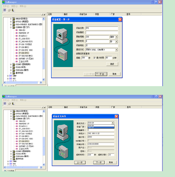 (1)打開組態軟件,選擇“IO設備驅動”->“PLC”—>“SIEMENS( 西門子)”—>“S7200(PPI)”,建立設備,參數要和硬件設備相關的參數一致。