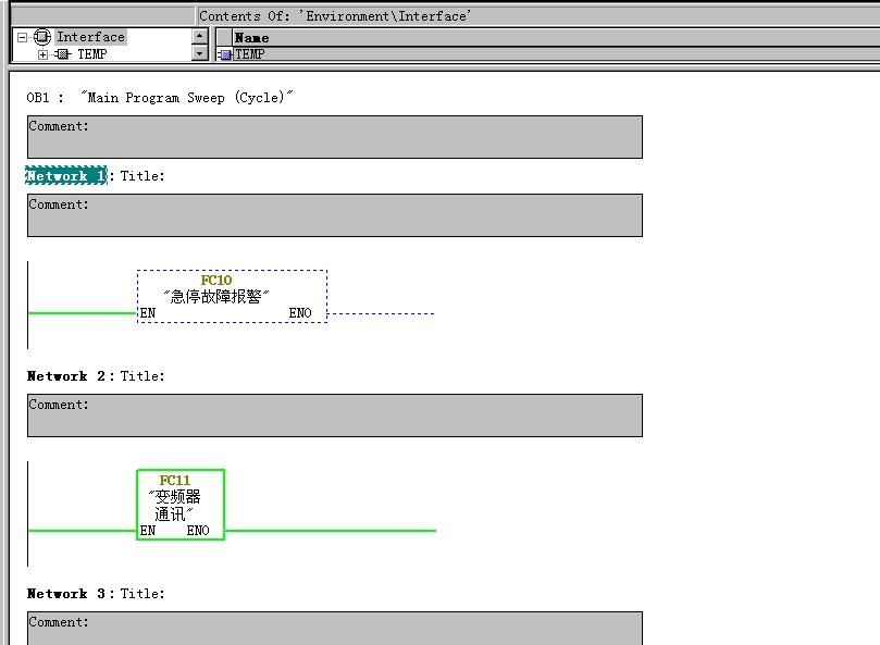 在OB1中調用我寫的FC塊,然后我把主程序全部下載進去,發現FC塊是綠框,有的是虛線框,過了一會之后,有的又變成了虛線框和綠框。但是程序可以正常運行以及監控!