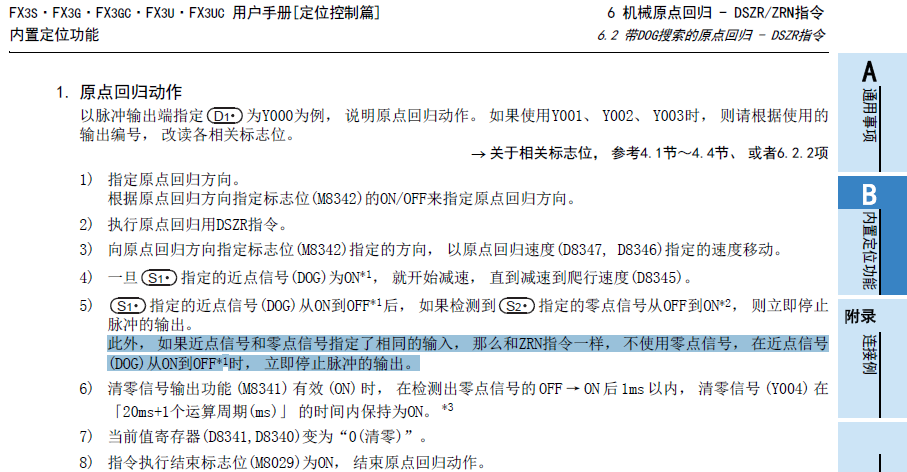 此外, 如果近點(diǎn)信號和零點(diǎn)信號指定了相同的輸入, 那么和ZRN指令一樣, 不使用零點(diǎn)信號, 在近點(diǎn)信號