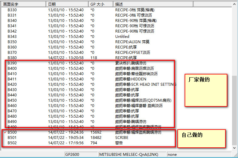 引用引用樓主ma5201314于2014-07-22 21:47發表的 GP-PROPB 主文件問題請教 : ] 大家好: 今日本人使用GP-PROPB軟件,做了一個GP-2600T的主文件窗口,內存顯示15692,而廠家做的內存顯存*0, 不知我做的什么出現這這中情況?求助!!!(內部未添加圖片,共4種:有長方形、文本框、功能開關、位開關) .......
