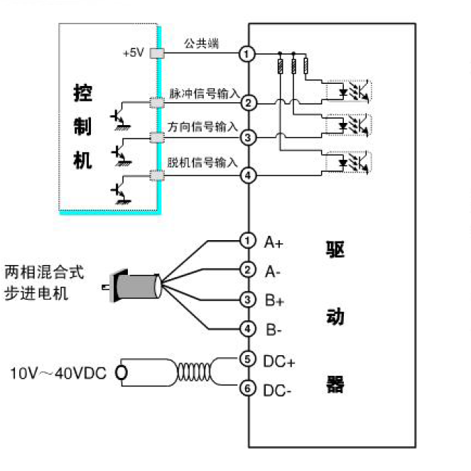 問題是這個(gè)驅(qū)動(dòng)器的公共端只能接正。脈沖和方向只能接受負(fù)信號(hào),現(xiàn)在的問題是怎么才能把高速脈沖輸出的正變?yōu)樨?fù)