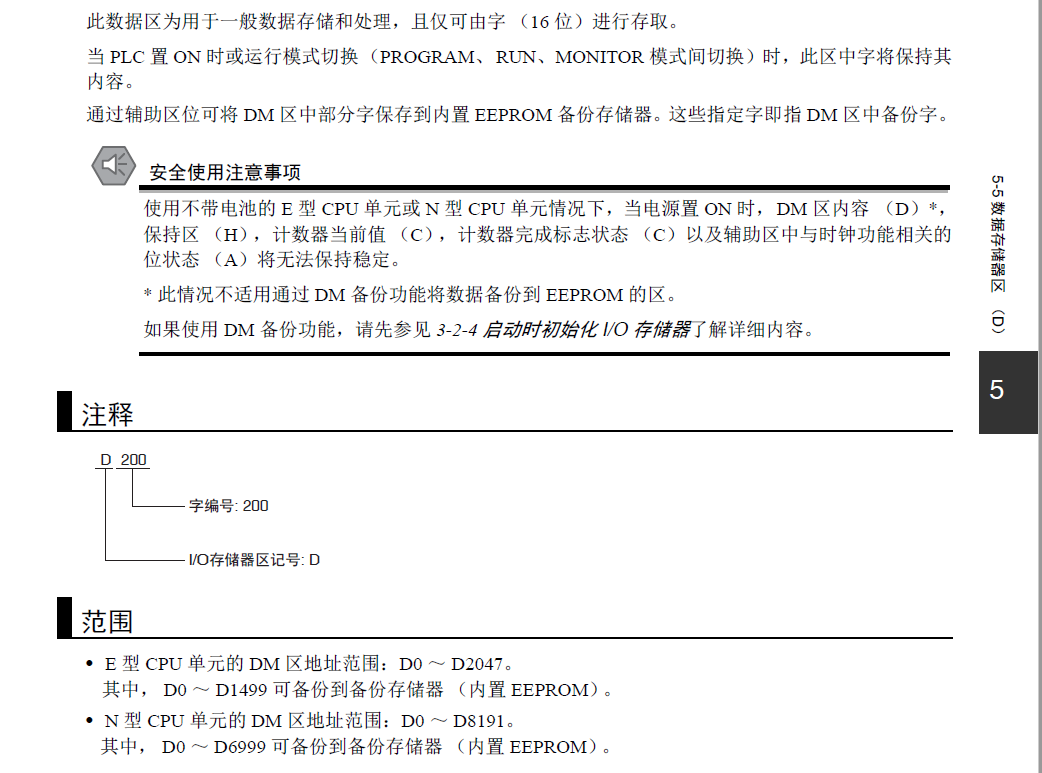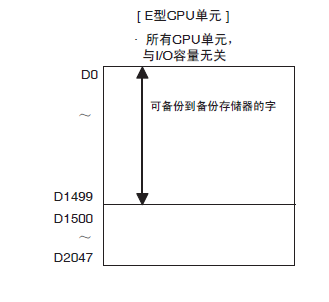 如果PLC沒有電池的情況下,普通的數據區域會變成亂碼,在這種情況下,可以用指令將你圖中范圍內的D區數據保存到RAM中,然后在上電的時候,將RAM保存的數據恢復到范圍內的D區,使該區域的數據不會變成亂碼,基本上是CP1E-E系列的PLC才需要。