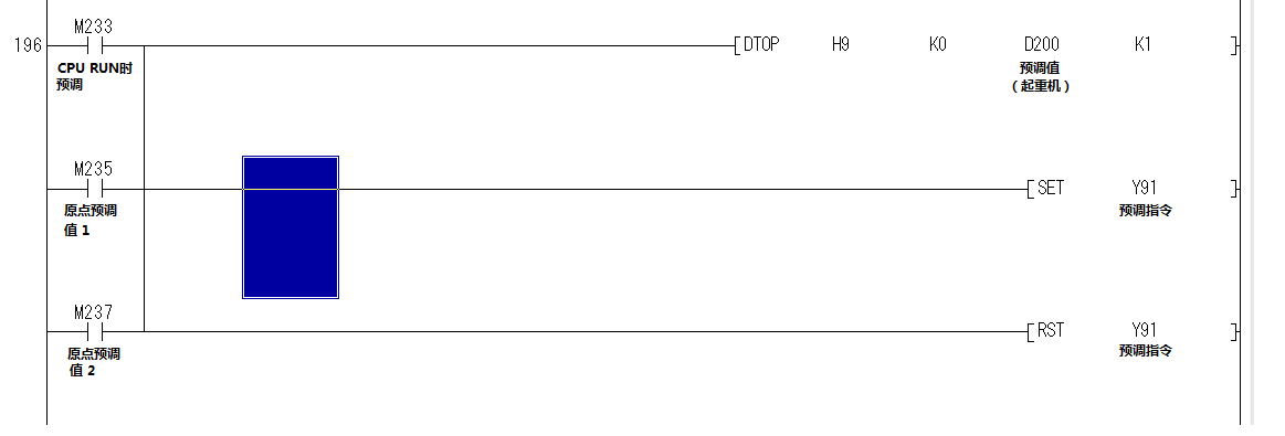 第一段當前面條件滿足的時候Y91最後的結果是OFF的, 但是第二段前面條件滿足時Y91是ON的。
