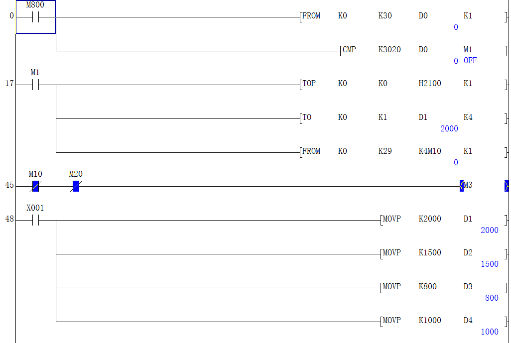 前一張圖片是M800,這張是M8000,確定接通。狀態(tài)都一樣,D0=0。