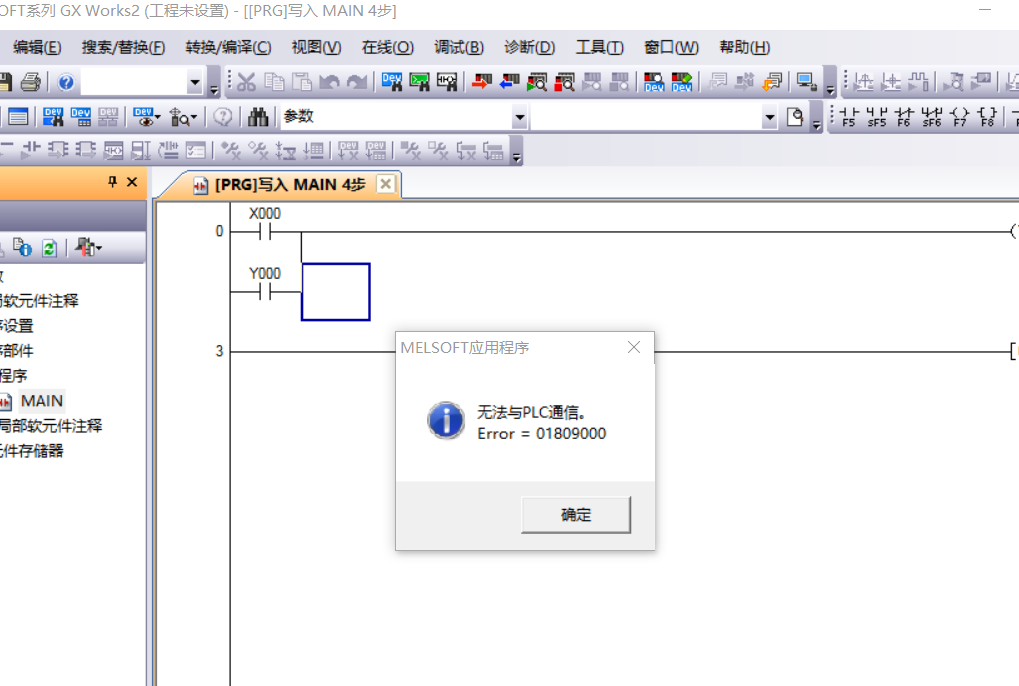 就是寫了一個程序之后 點擊 轉換/編譯---轉換,之后再點擊調試---模擬開始停止,然后就出現了 無法與PLC通信  error=01809000
