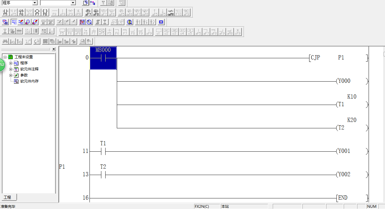 M8000接通后,Y000工作,T1和T2同時工作了,寫的不對。去書中看看CJ如何寫的,Y000,T1,T2寫的不對。