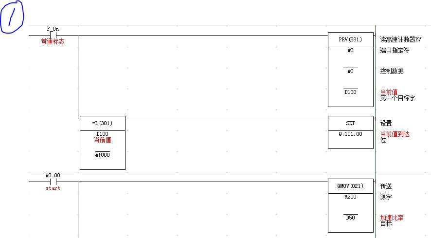 CP1H PLC,執行PLS2指令,當脈沖輸出當前值等于某個設定值時(該值并不是PLS2指令中的脈沖輸出設定量),驅動101.00輸出,該怎么編程??