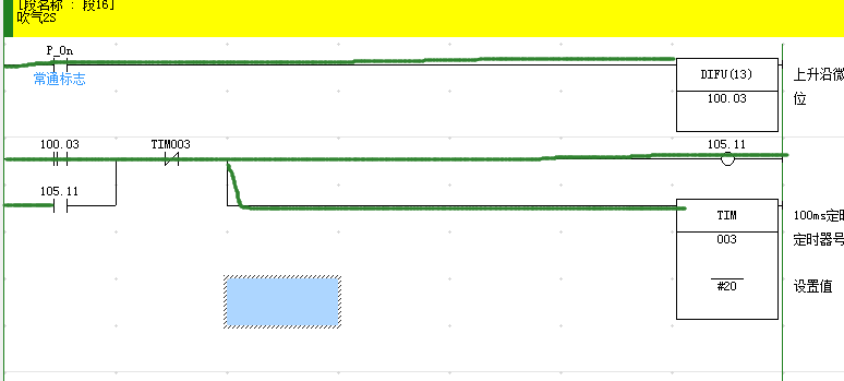 當設備處在原點位置的時候,10003是保持接通的,所以我就想采樣它的上升沿作為吹氣的信號,用T3定時器計時2S