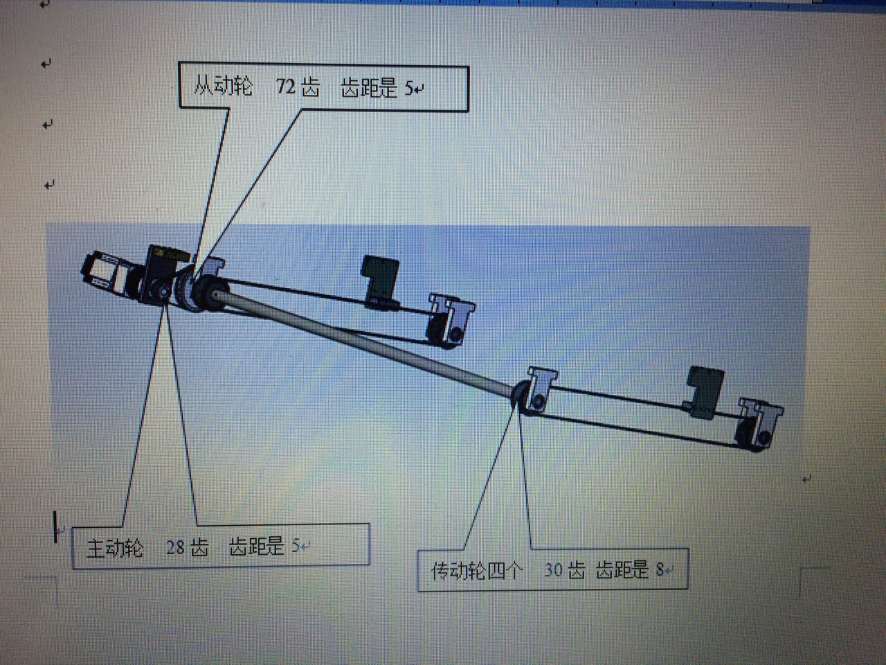從動輪節距是5毫米,齒數是72個齒,則從動輪節周長為:72*5=360mm