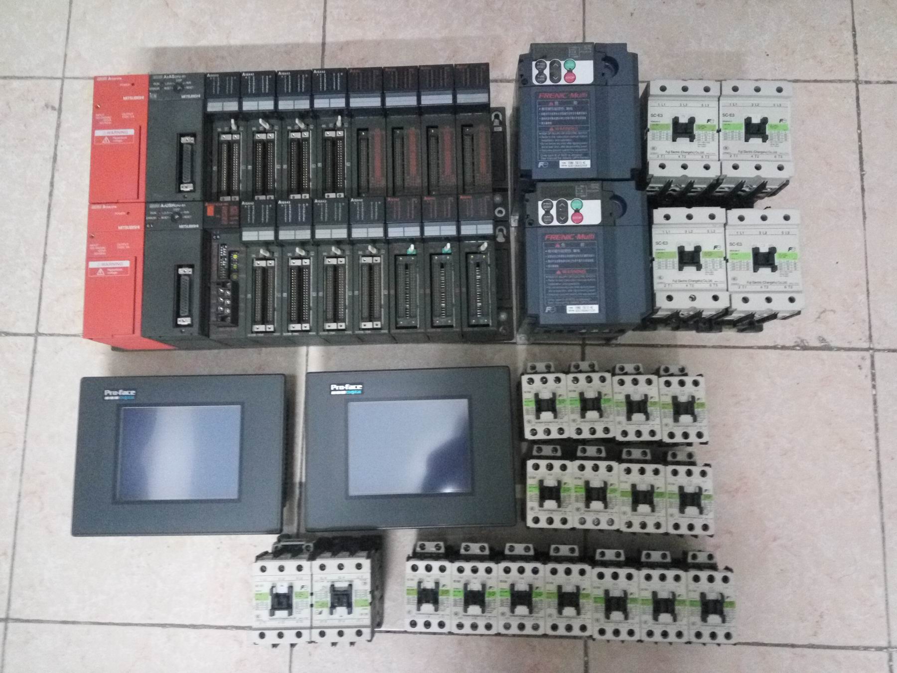 三菱A系列PLC,富士變頻器接觸器,Proface觸摸屏,八成新,本人在昆山,qq290923267