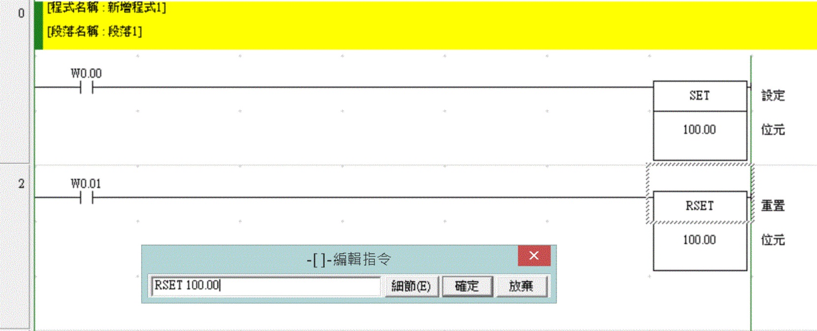 我是PLC初學(xué)者,想請教各位前輩;歐姆龍PLC的RSET指令編程時如何編寫?其快捷鍵是什么?