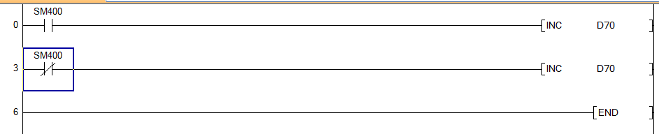 之后到第二個掃描周期,第一行還是Z0為0,跟第一個掃描周期類似,由于進入循環的第0次時,Z0為0,所以必定=D70Z0 D70條件成立,D70自加1,也就是變成2;其后周期同理會加1;模擬器的掃描周期為100ms,所以一秒加十次。
