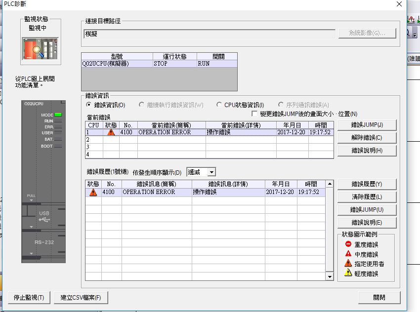 請問各位前輩為何用WORK2模擬一直出現4100異常錯誤