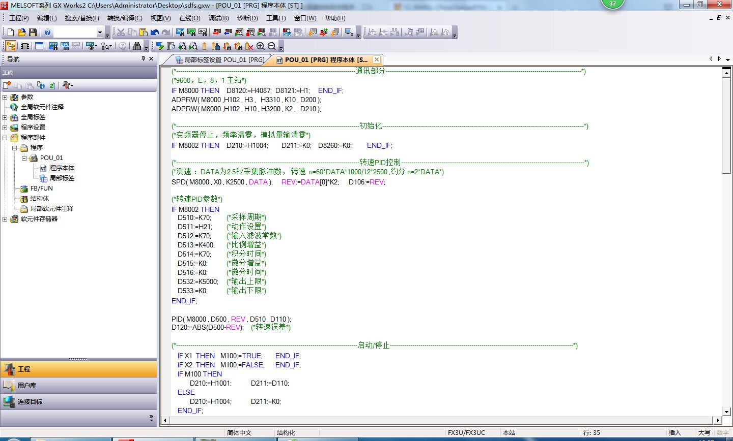 看了樓主的貼, 忽然明白了FX3U的ST編程方法, 嘗試用ST語言寫了段小程序,發(fā)現(xiàn)用ST語言編程比梯形圖方便多了。