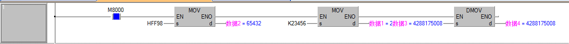 [MOV K65432 D0],,數值超范圍,寫不進去,,,改成 【MOV  HFF98 D0】,程序試過,這樣是可以的,
