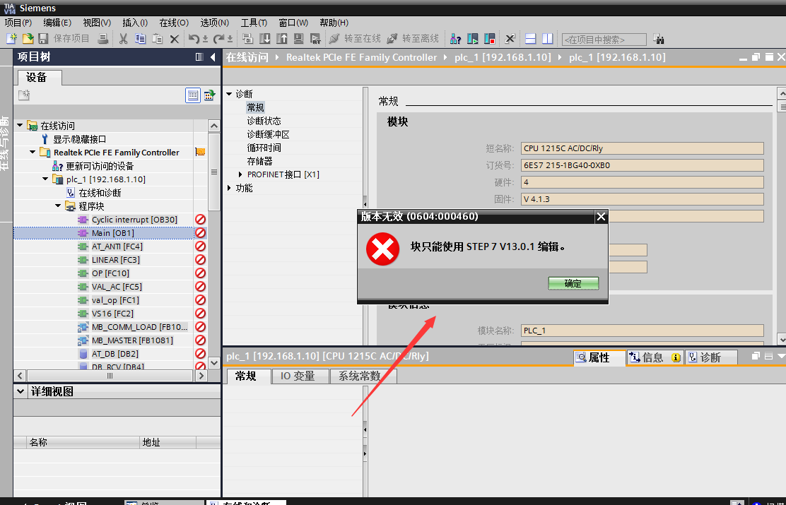 我廠里的S7 1200過保了 原來是用v13寫的程序 現在我用v14提不出來咋回事?