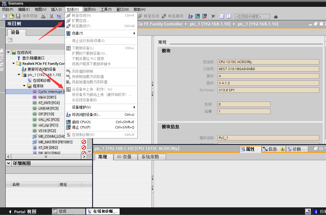 程序沒有密碼保護,我在線診斷讀到了PLC 然后上載是灰色