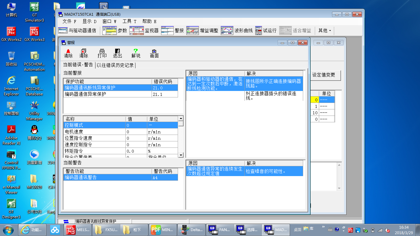 引用引用樓主5-power于2018-03-29 16:39發(fā)表的 急急急急急急 :如圖,我現在有兩臺一樣的200W的松下A5伺服,驅動器和電機都是一樣的規(guī)格,但是上了電后一直顯示報警,一臺是報21.0,一臺是報21.0和21.1,而且我確定接線是沒問題的