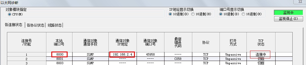 SLMP可能是三菱專用的通訊協(xié)議,我用開放式通訊協(xié)議,可以看見當(dāng)前連接的上位機了