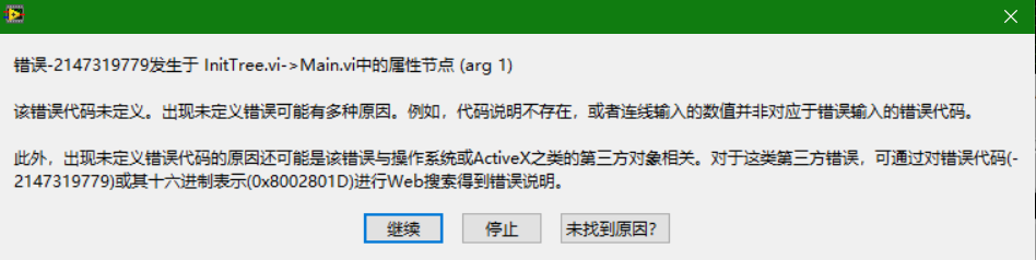 各位大神,運行LABVIEW是報錯 誤-2147319779發(fā)生于 InitTree.vi->Main.vi中的屬性節(jié)點 (arg 1)